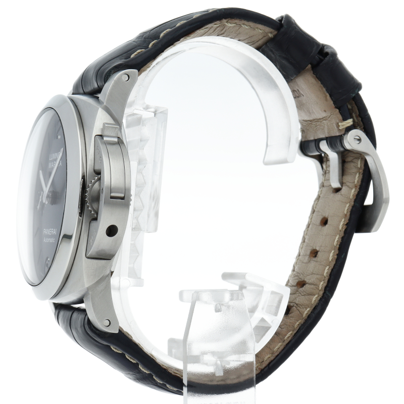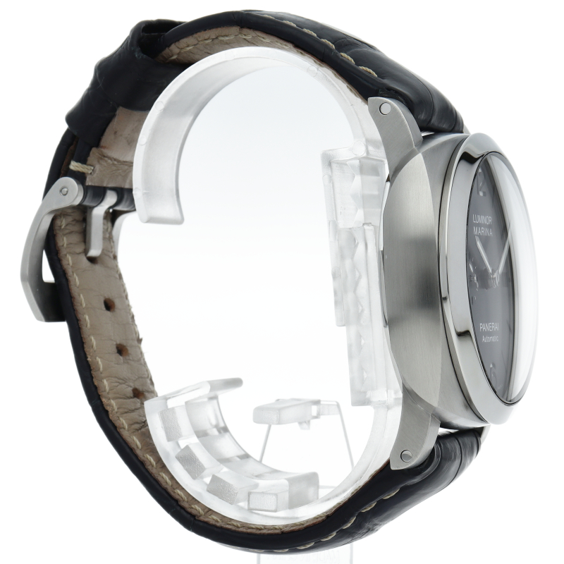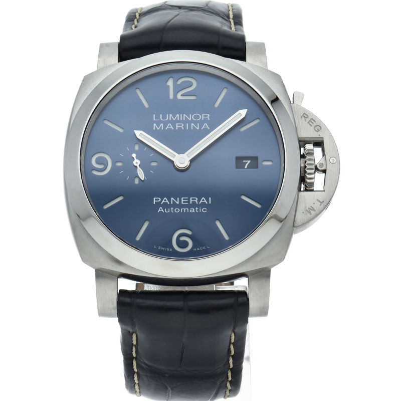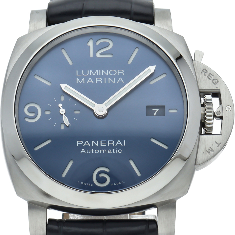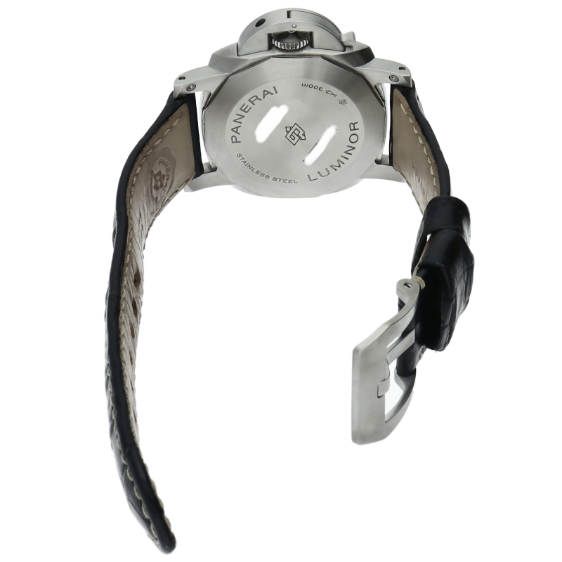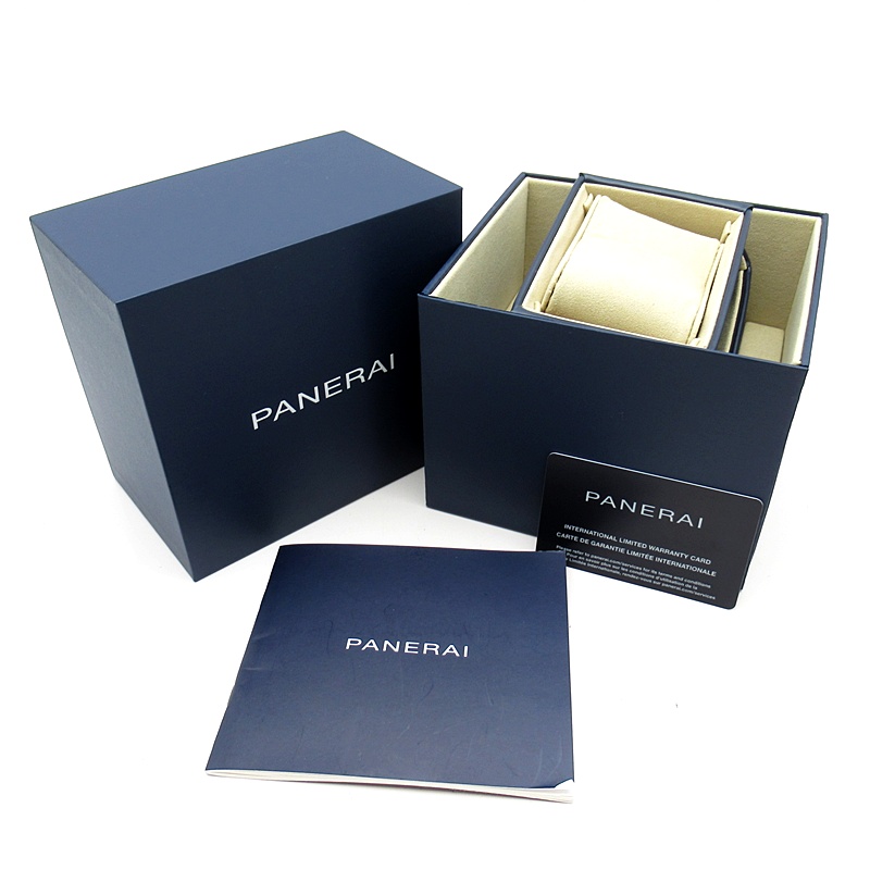 パネライのマニュファクチュールで開発・製造した自社製P.9010 キャリバーは、中央に時針と分針、9時位置にスモールセコンド、3時位置に日付表示を備えています。時針だけを1時間ずつ前後にジャンプさせる機能で、分針の動きに妨げられることなく時間を調整することが可能です。この機能は、タイムゾーンが変わる際や夏時間と冬時間の間を移動する際に非常に便利です。OP7393。