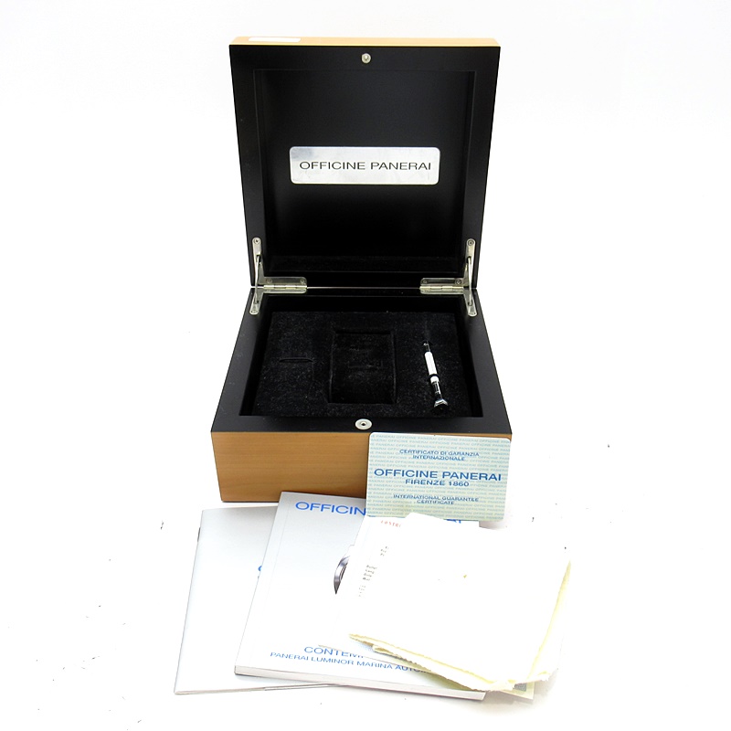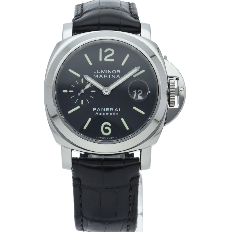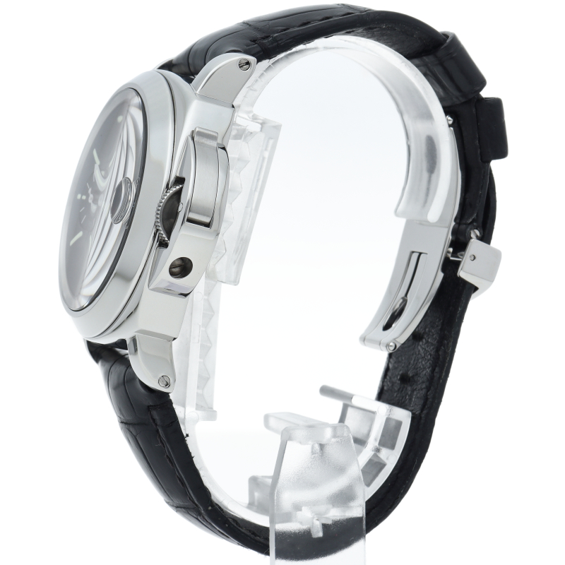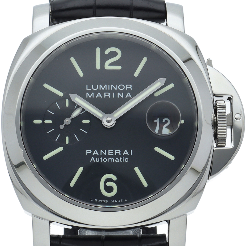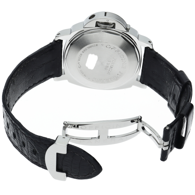 パネライの中でも人気度の高い「ルミノールマリーナ」。デイト表示とスモールセコンドを配置したシンプルな44ミリケースとオーソドックスなデザインが人気です。OP6553。