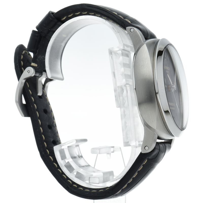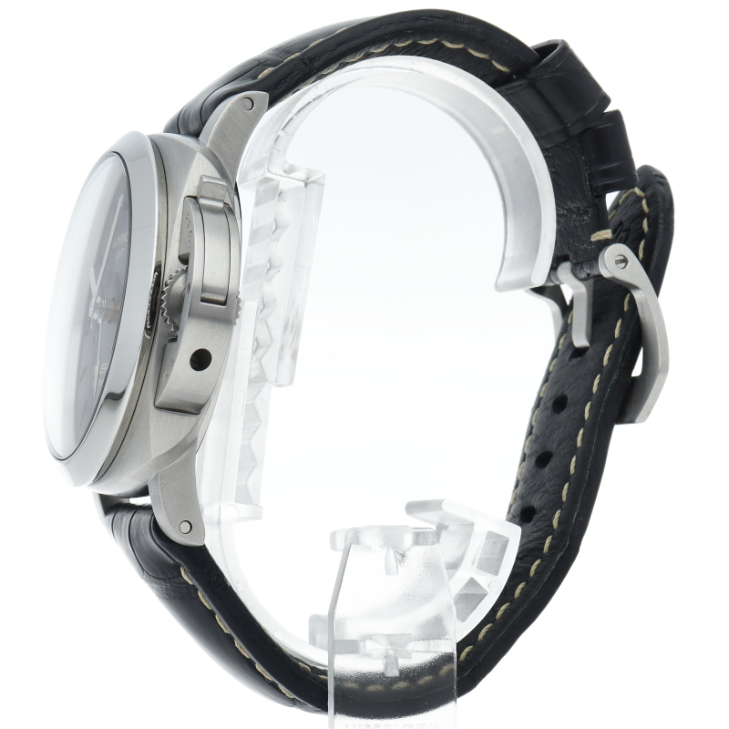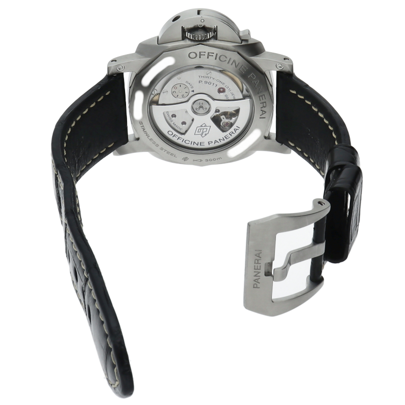 「ルミノール GMT - 44MM」は、航海の世界から発想を得たモデルです。ケース直径はオリジナルモデルよりも若干小さい44mmで、潜水時により快適な着け心地の大きさになっています。OP7118。