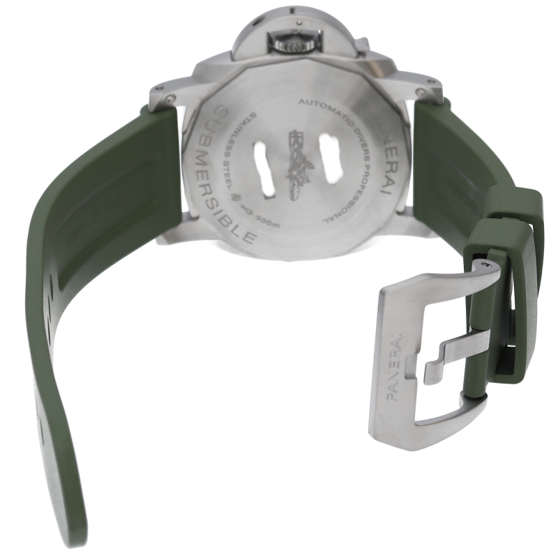 2022年発表のケース径44mmの「PAM01226 サブマーシブル クアランタクアトロ」。プロフェッショナルダイバーウォッチとして充分な300m防水を確保して、ムーブメントにも3日間のロングパワーリザーブを誇るキャリバーP.900を搭載。パネライウォッチの特徴でもあるリューズプロテクターはそのままに、ダイビンググローブを着けたままでも操作性の良い逆回転防止ダイビングベゼルを装備します。OP7482。
