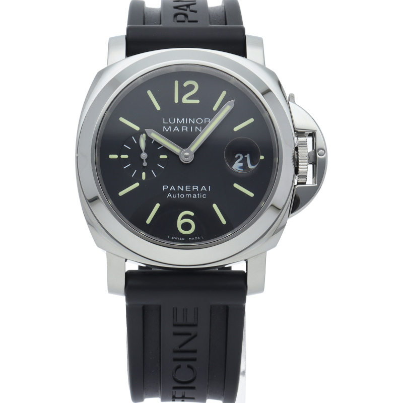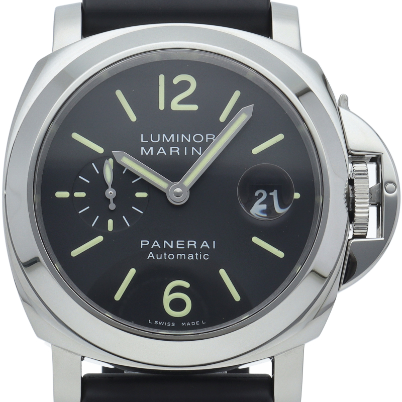 パネライの中でも人気度の高い「ルミノールマリーナ」。デイト表示とスモールセコンドを配置したシンプルな44ミリケースとオーソドックスなデザインが人気です。OP6763。