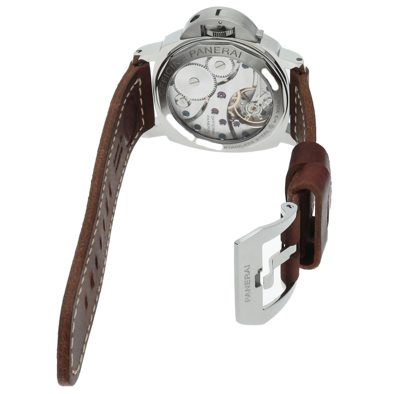 パネライの中でも人気度の高い「ルミノールベース」。44ミリのインパクトあるケースサイズとオーソドックスでシンプルな2針が特徴的な1本。OP6727。