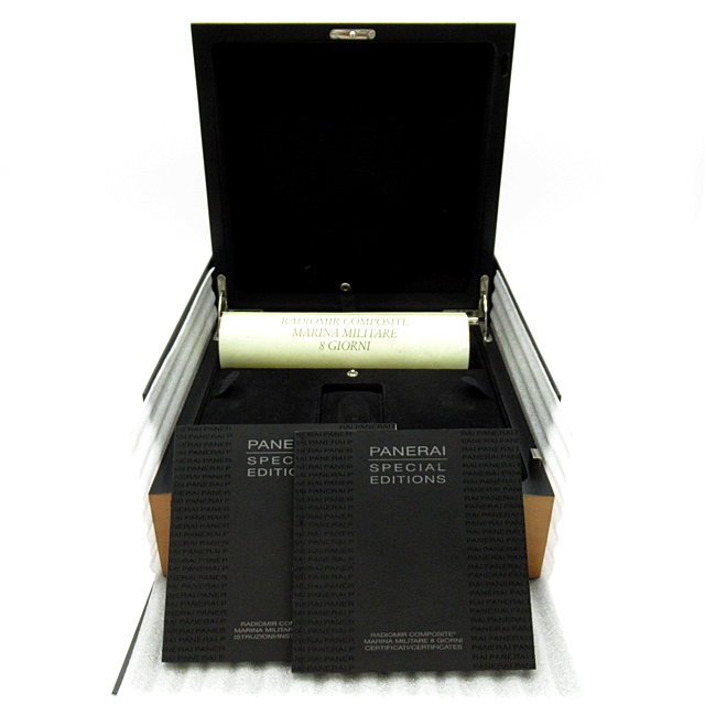 2010年に1500本限定で発売されたスペシャルエディションです。ケースと尾錠にパネライが開発したアルミニウムベースの新素材「コンポジット」を使用し、驚くほどの軽量化を実現しています。キャリバーP.2002/7を搭載した8デイズです。OP6806。