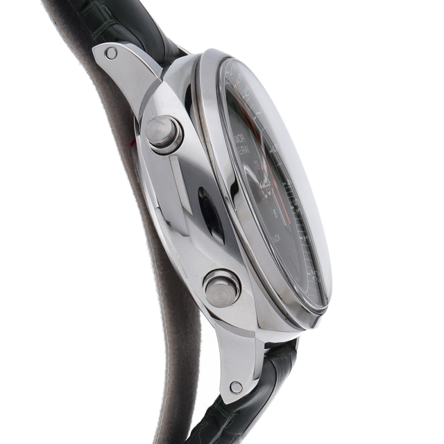 ルミノールクロノフライバックPAM01296はグリーンの「Verde Militare」文字盤にオレンジのクロノ針を配した現代的なデザインです。洗練されたポリッシュ仕上げの44mmスチールケースを備えたスポーティでカジュアルな雰囲気は、紛れもないエレガンスを備えておりグリーンのアリゲーターレザーストラップによって引き締められています。世界110本限定。OP7491。