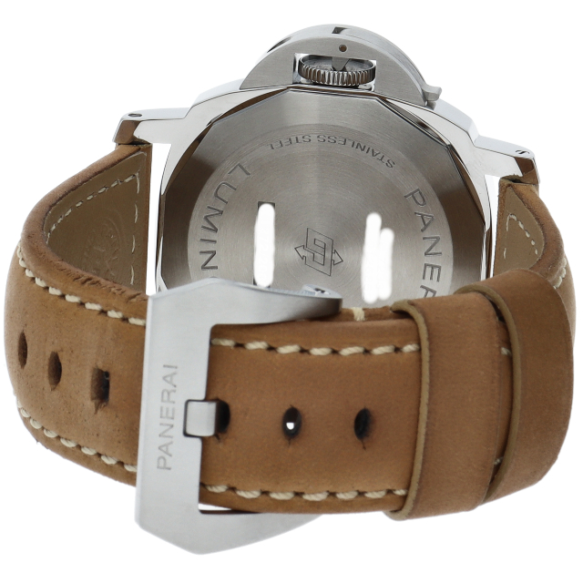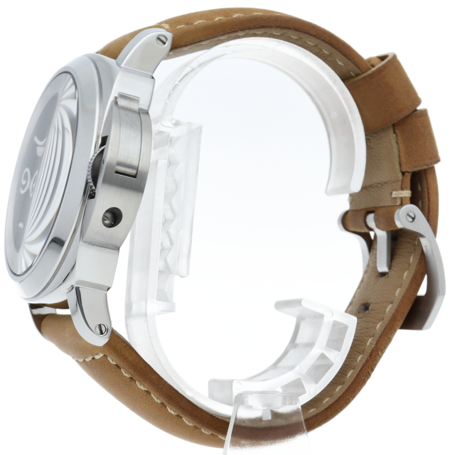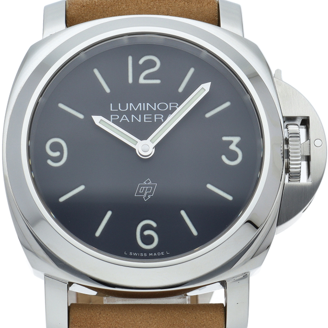 パネライのシンプルな「ルミノールベース」の文字盤にロゴが入ったモデル。6時位置にパネライの初期のモデルに見られた「OP」ロゴを刻印。ブラックのシンプルな文字盤には、夜光アラビア数字とアワーインデックスを備えており、夜間でも高い視認性を誇ります。ムーブメントにはパネライの完全自社生産のP.6000 キャリバーを搭載。OP7233。