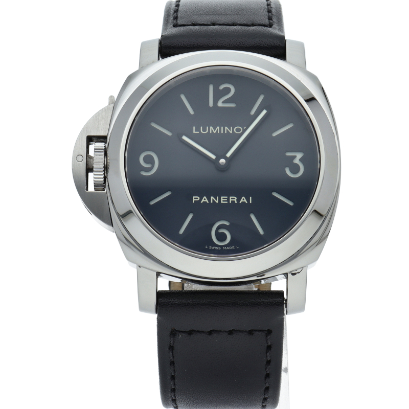 パネライの中でも人気度の高い「ルミノールベース」。44ミリのインパクトあるケースサイズとオーソドックスでシンプルな2針が特徴的です。こちらはコンパスや水深計を左手首に装着していたイタリア海軍特殊潜水隊員のために誕生したレフトハンドモデルになります。OP6647。