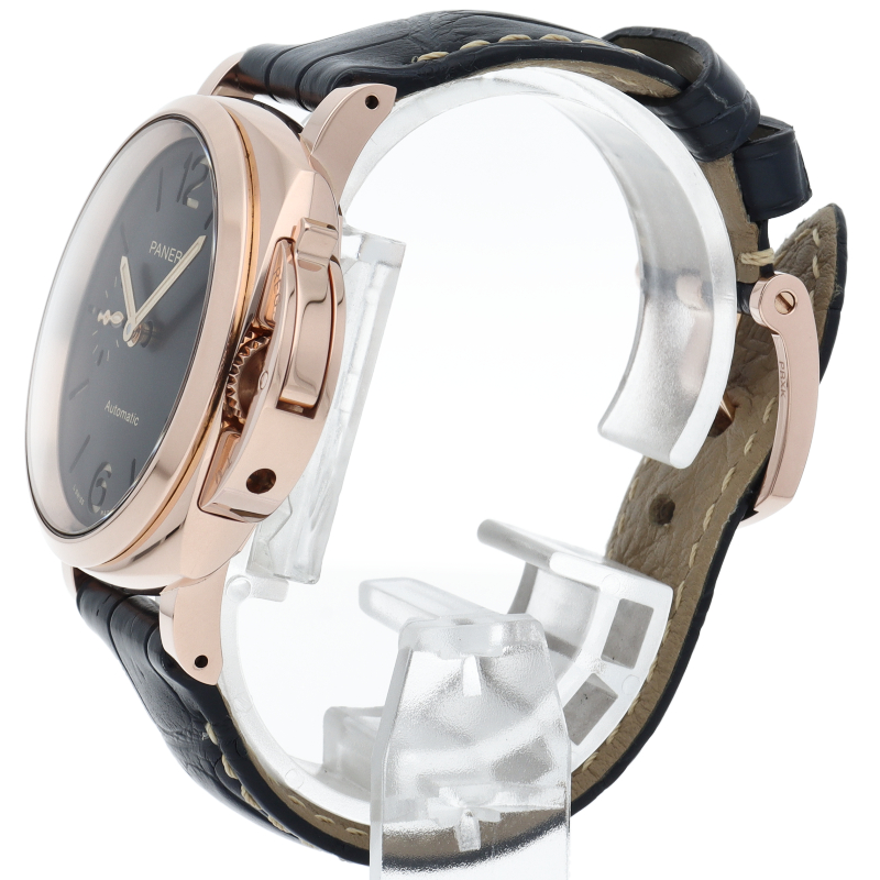 2016年に発表された、パネライの薄型コレクション「ルミノール ドゥエ」。2019年に誕生した「PAM01029」は、銅とプラチナを独自の割合で配合したパネライオリジナルのレッドゴールド合金「ゴールドテック」がケースに使用されています。38mmの控えめなサイズのため、女性はもろん、スーツスタイルにパネライを合わせたい男性にもおすすめできる腕時計です。