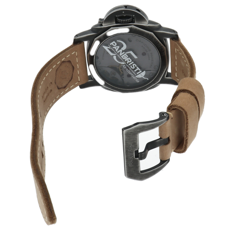 パネライ愛好家のコミュニティ「パネリスティ」の創設25周年を記念した特別なモデル。ブルニート仕上げが施されたケースに、 1960年代のモデルを彷彿とさせるドーム型の風防、伝説的なモデルである「Fiddy(フィディ)」の上下逆向きになったリュウズプロテクターを再現しています。OP7711。