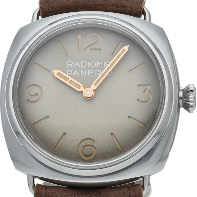 ラジオミールはルミノールと並んで人気を博するパネライの代表的コレクション。パネライ初の腕時計として誕生したラジオミールはシンプルなクッションケースとシックな革ベルトが組み合わされるクラシカルなコレクションです。