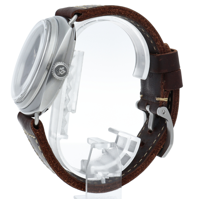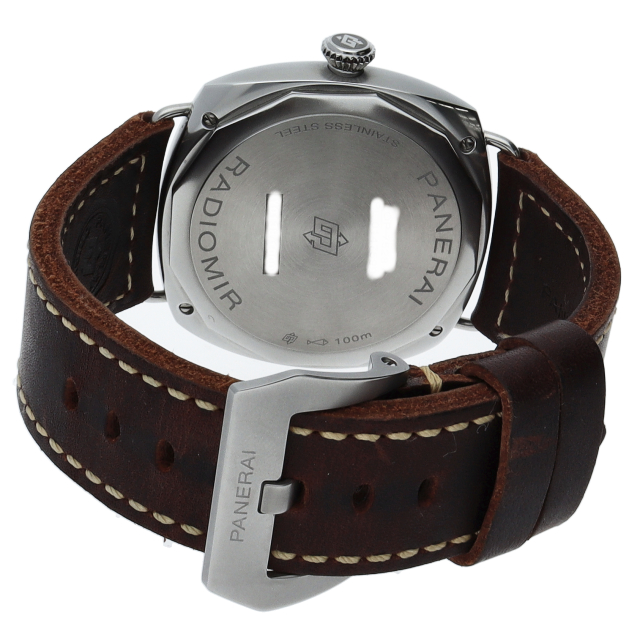 パネライ創業時の意匠を継承する大人気モデル「ラジオミール」。パネライ特有のクッション型ケースにワイヤーラグが特徴です。「トレ ジョルニ」はイタリア語で3日間の意味となり、その名の通り約3日間のパワーリザーブを持つ手巻きムーブメント「P.6000キャリバー」を搭載シています。OP7528。