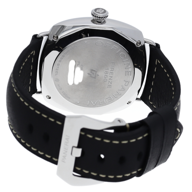 「ラジオミール」は、1938年にイタリア海軍のために「オフィチーネ パネライ」が製造した、最初の歴史的腕時計のデザインを再現したものです。時間のみを表示する潔さは、時計本来の機能と魅力を楽しみたい方にもおすすめ。「Cal. P.6000」を搭載し、3日間のパワーリザーブを有しています。OP7160。