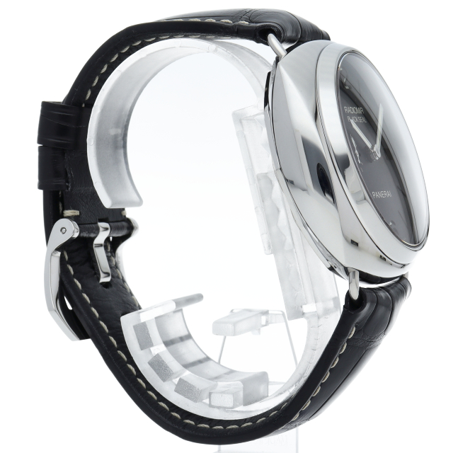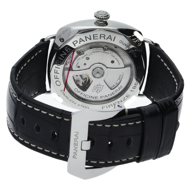 自社キャリバーP9000を搭載した初めてのラジオミール。今まではルミノールのみに搭載されていましたので、待望のモデルとしてお待ちになっていた方も多いのではないでしょうか。シースルーバックを採用し、自慢のキャリバーを眺めることができます。OP6848。