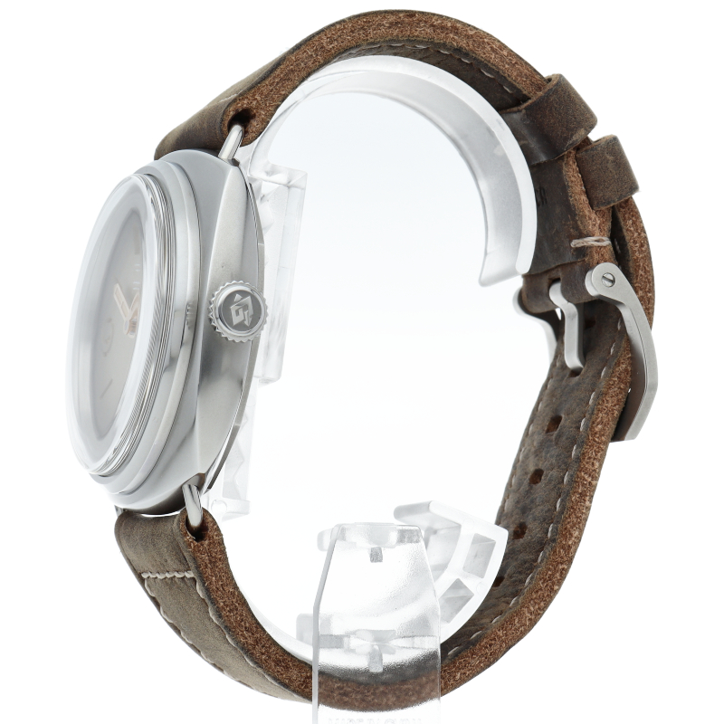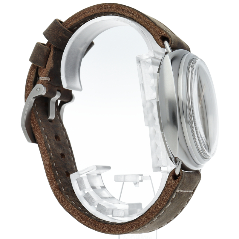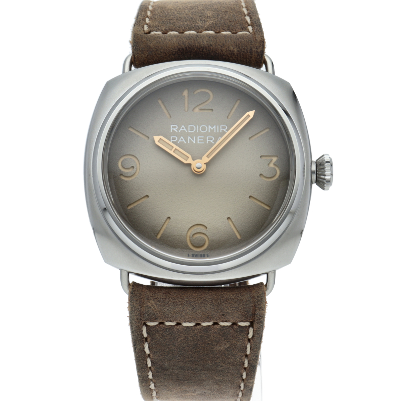 ラジオミールはルミノールと並んで人気を博するパネライの代表的コレクション。「トレ ジョルニ」はイタリア語で3日間の意味となり、その名の通り約3日間のパワーリザーブを持つ手巻きムーブメント「P.6000キャリバー」を搭載。また文字盤にも退色した様なエイジド加工が施されアンティークモデルを彷彿とさせる雰囲気のあるモデルに仕上がっています。