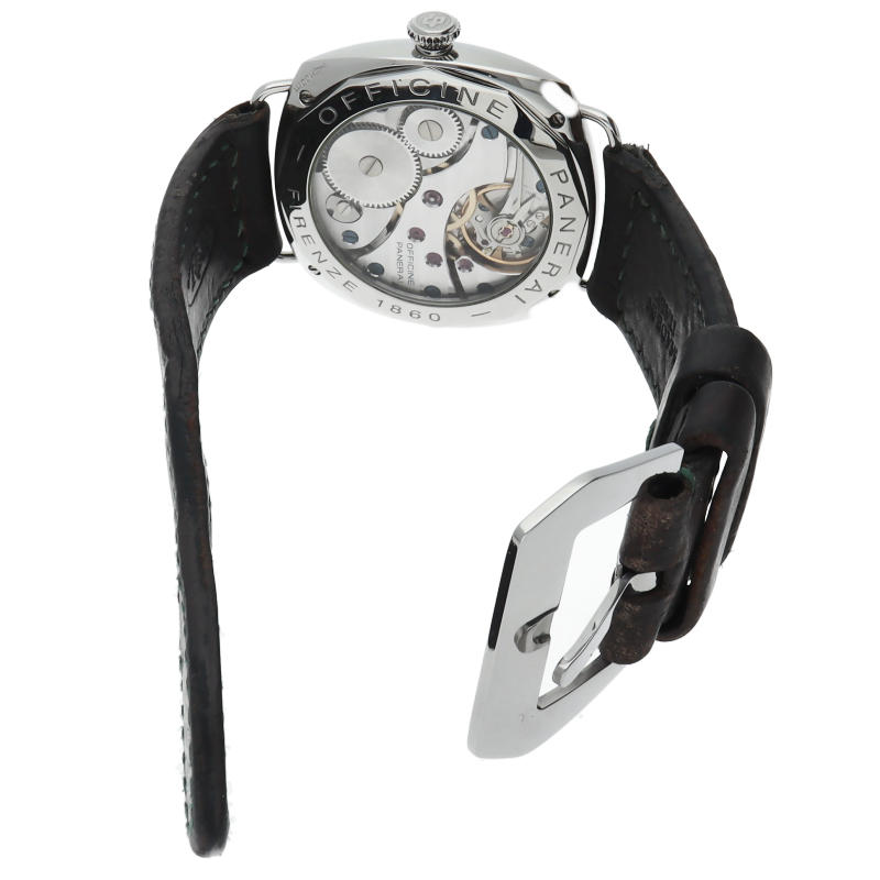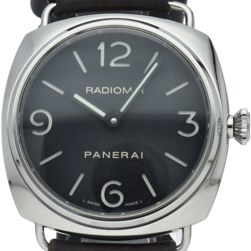 ラジオミールはルミノールと並んで人気を博するパネライの代表的コレクション。パネライ初の腕時計として誕生したラジオミールはシンプルなクッションケースとシックな革ベルトが組み合わされるクラシカルなコレクションです。