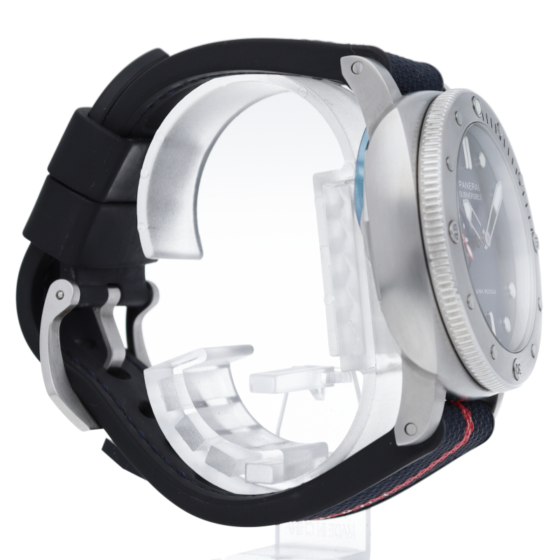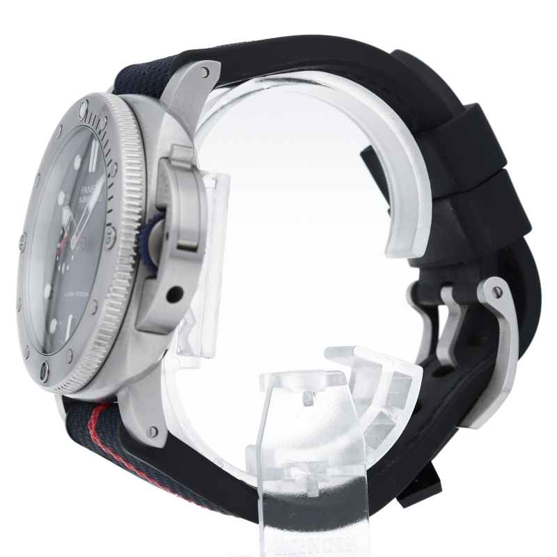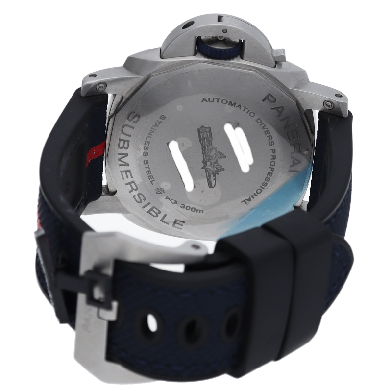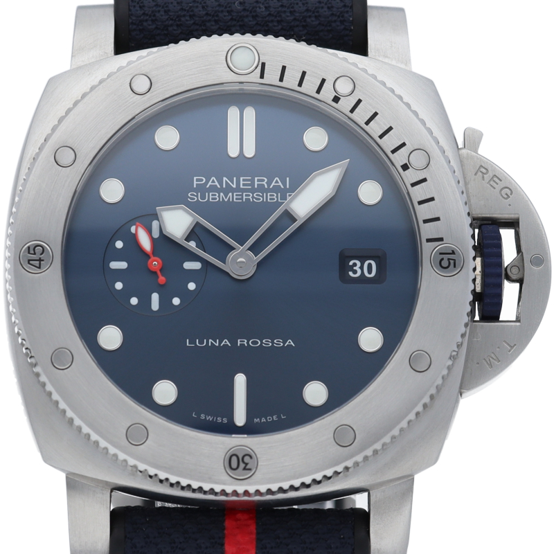 パネライが、プラダのヨットチーム「ルナ・ロッサ プラダ ピレリ」のスポンサーを再開し、チームの第37回アメリカズカップ出場を記念して発売された限定コラボレーションモデル。人気のサブマーシブルをベースとした「ルナ・ロッサ」限定仕様です。海を思わせるマリンブルーに赤のアクセントが特徴的。ムーブメントは3日間パワーリザーブの自動巻き(キャリバーP.900)を搭載。OP7529。