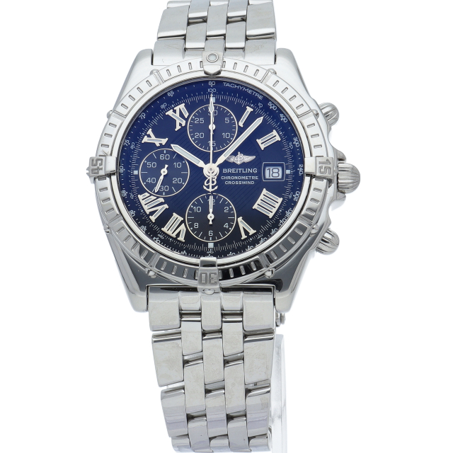 洗練されたスタイリングが魅力的な「クロスウィンド」、生産終了モデルです。ケースやベゼル、ブレスレット等落ち着いた雰囲気です。