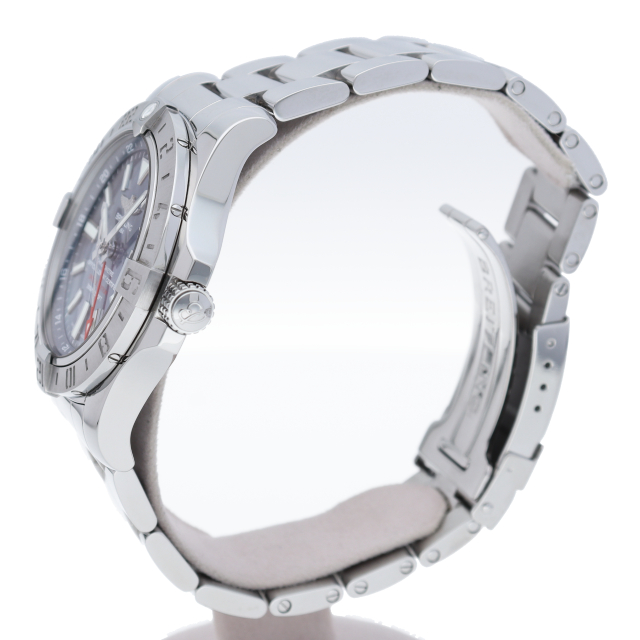 名前の通りGMT機能が付随しており、24時間表示インデックスが刻まれた両方向回転ベゼルを操作することで、第3タイムゾーンの時刻まで読み取ることができる実用性の高いモデルです。A32390(A329CMPPSS)。