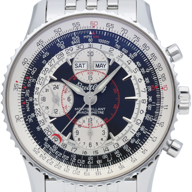 ブライトリングの人気モデル「モンブリラン ダトラ」。クラシカルなデザインとクロノグラフとトリプルカレンダー機能が搭載された機能性に優れた腕時計です。A21330(A213B93NP)。