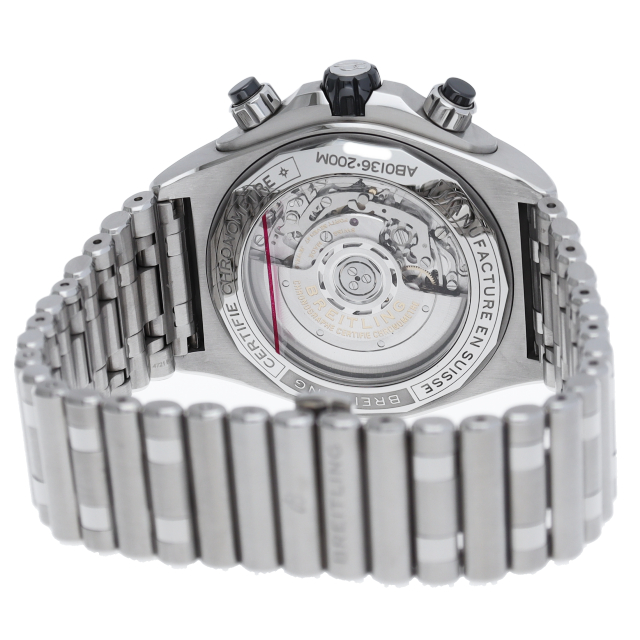 スーパー クロノマットは、1980年代にブライトリングがイタリア空軍の曲技飛行隊名手のために製作したオリジナルのクロノマットにインスパイアされています。ベゼル、クロノグラフのプッシュボタン、リューズなどにセラミック インサートを使用しており、ルーローにインスパイアされたラバーストラップも特徴的です。COSC公認クロノメーターのブライトリング キャリバー01搭載。AB0136(AB0136251B1A1)。
