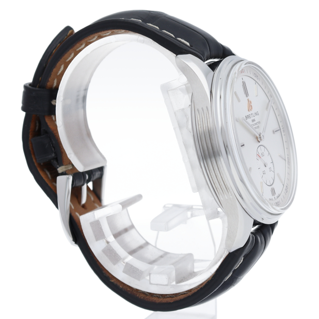 1940年代にウィリー・ブライトリングが設計したプレミエを現代的に再解釈したエレガントな1本。40年代のプラスチック風防を彷彿させるドーム型サファイアクリスタルガラスを採用し、ムーブメントにはCOSCクロノメーター認定のブライトリングキャリバー37を搭載。A37340(A37340351G1A1)