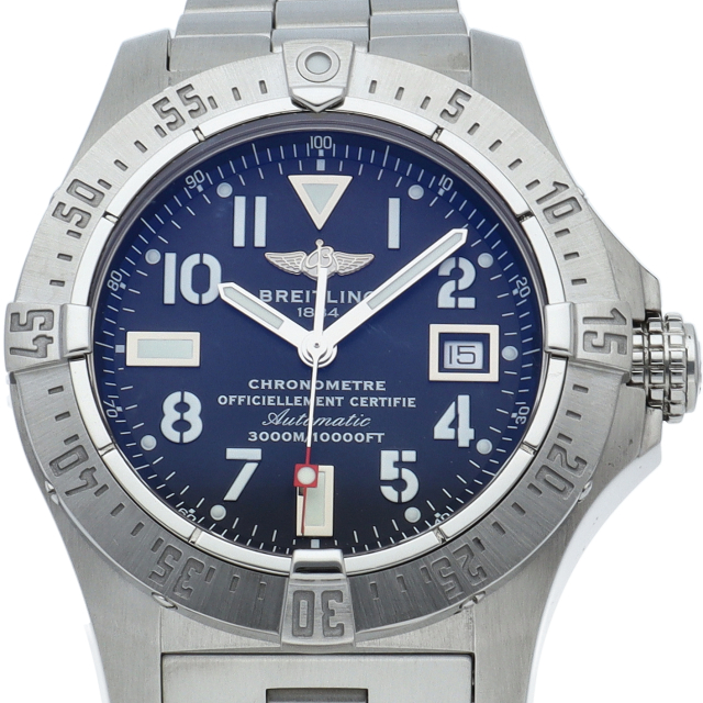 45ミリオーバーのボリューム抜群のケースに操作性の高いベゼルとリューズを備えています。地上はもちろん深海のような過酷な環境下でも抜群の視認性を誇ります。プロフェッショナルな機能を追求した、強靱なダイバーズウォッチです。A17330(A177B06PRS)
