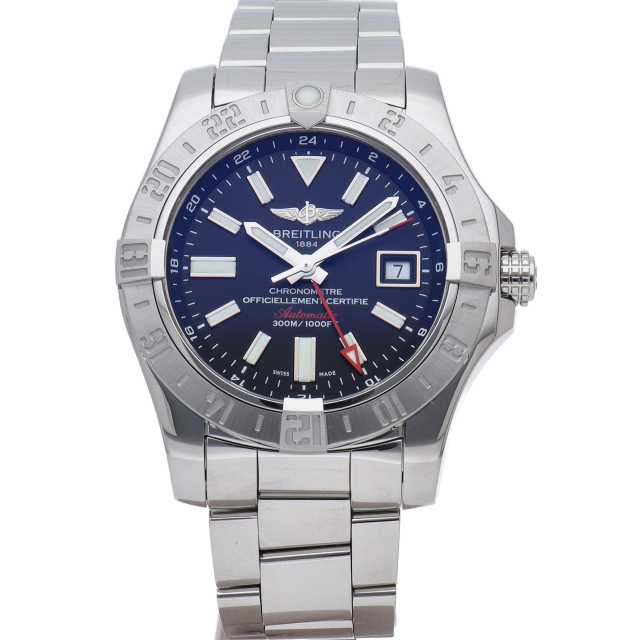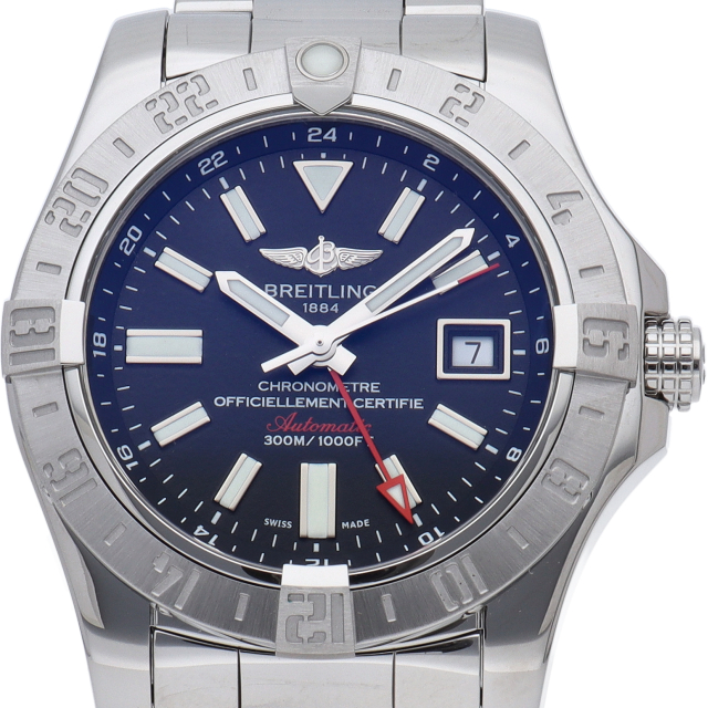 300mもの防水機能とGMT機能を備えた「アベンジャーII GMT」。24時間表示インデックスが刻まれたベゼルを操作することで第3タイムゾーンまでの時間が分かるようになっています。A32390(A3239011/BC35)。