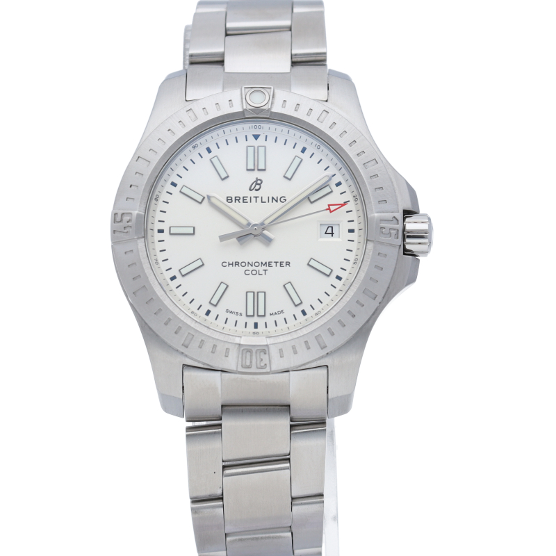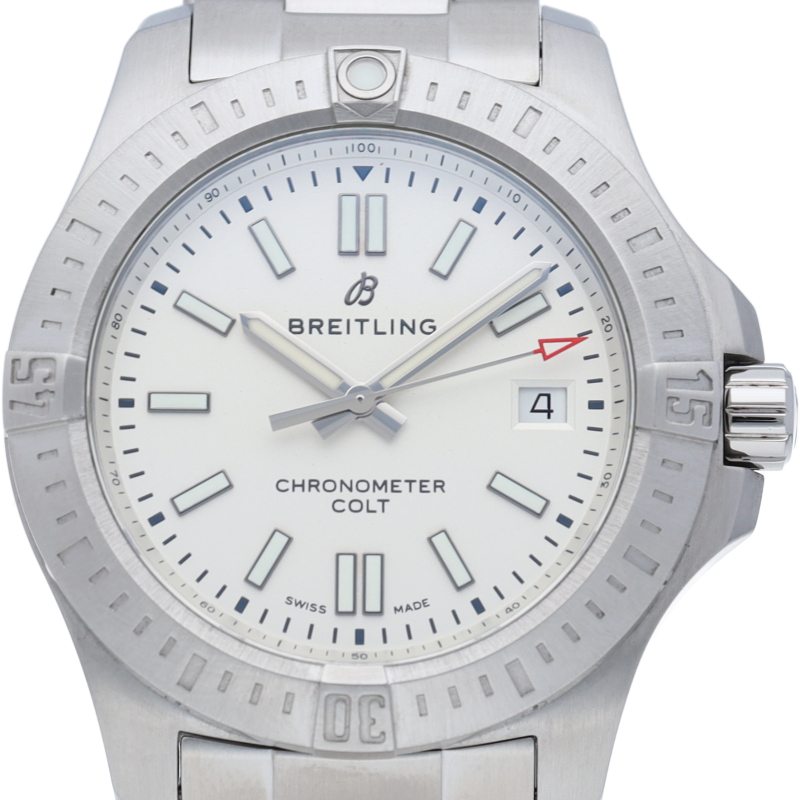 元は軍用時計としてデザインされ、2014年に復活を果たした「コルト」。ムーブメントにはCOSC公認のブライトリング17を搭載します。大変リーズナブルな価格で人気度の高いモデルです。A17313(A17313101G1A1)。