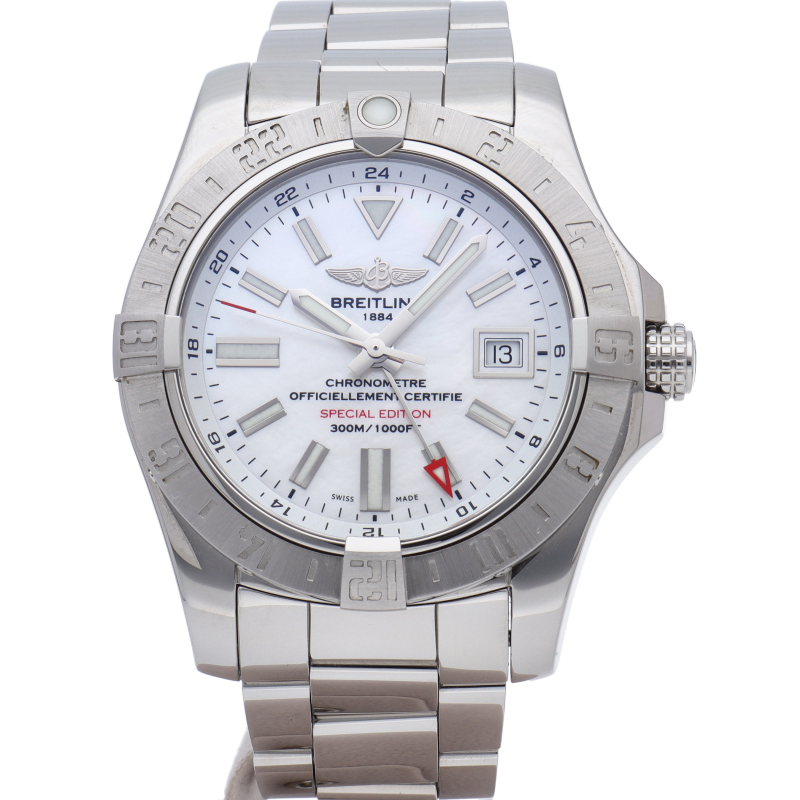 プロフェッショナルのための真の計器“アベンジャーII ”のGMTモデルです。赤いGMT針と回転ベゼルを活用することで、同時に3つの時間帯の時刻を表示することができます。人間工学に基づいて設計されたベゼルのライダータブは、機能性と見た目の美しさを両立した同モデルのシンボルです。日本限定モデル。A32390(A3239011/A809)。