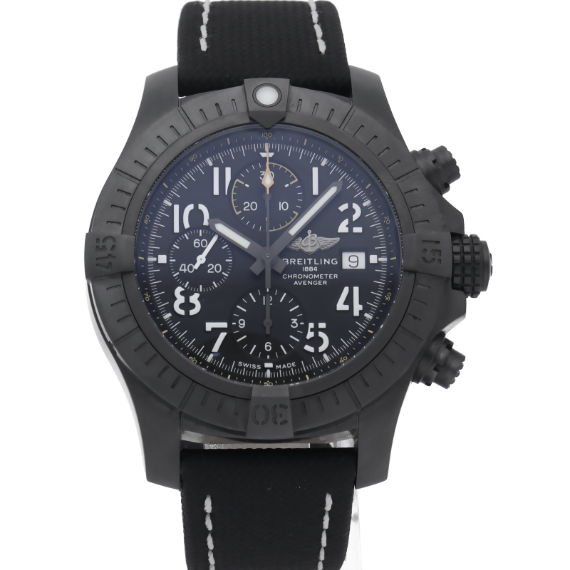 アベンジャー クロノグラフ 45 ナイト ミッションは、軽量でいて、強度、機能性、精度、デザインを兼ね備えたハイスペック・モデルです。スリップ防止パターン付リューズと強化大型プッシュボタンは、グローブ装着時でも使用しやすく、比類なき安全性と信頼性を空の冒険者に提供します。V13317/V13317101B1X1。