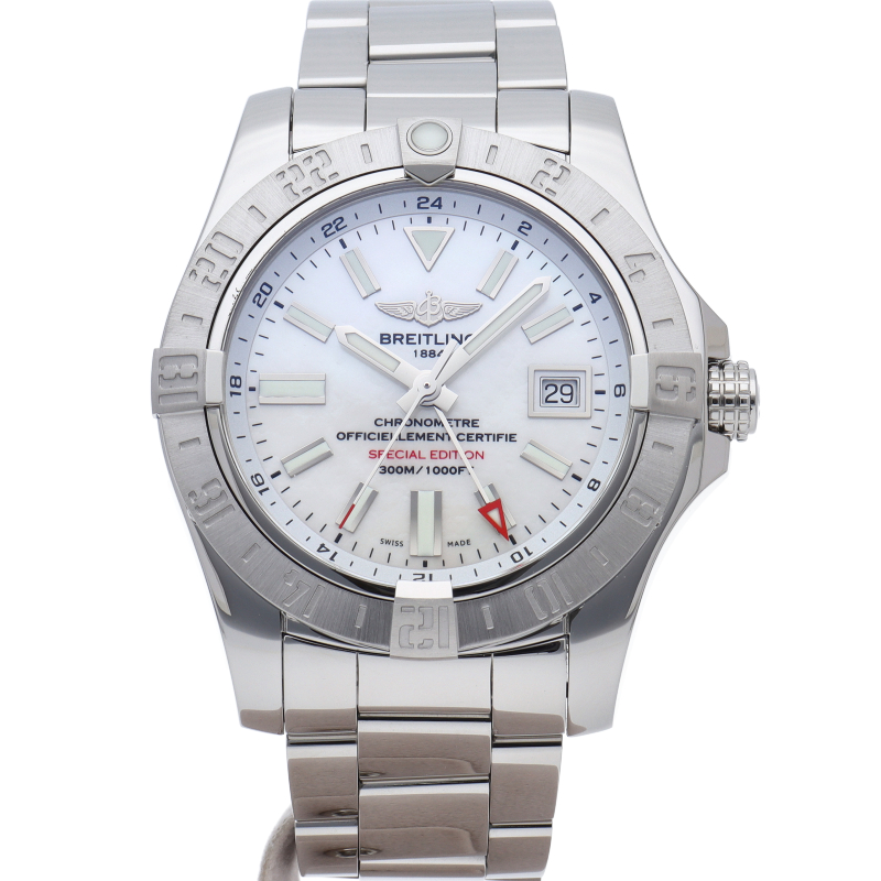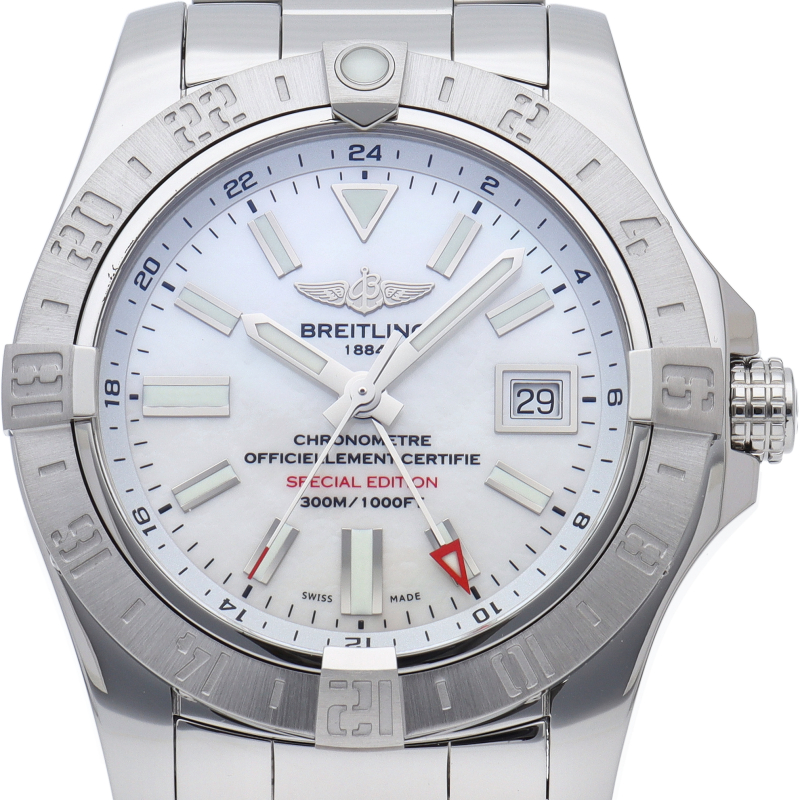プロフェッショナルのための真の計器“アベンジャーII ”のGMTモデルです。赤いGMT針と回転ベゼルを活用することで、同時に3つの時間帯の時刻を表示することができます。人間工学に基づいて設計されたベゼルのライダータブは、機能性と見た目の美しさを両立した同モデルのシンボルです。日本限定モデル。A32390/A3239011/A809