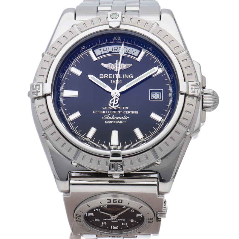 ブライトリングのウインドライダーシリーズ「ヘッドウィンド」、自動巻モデルです。日付・曜日表示を搭載したスッキリとしたデザインが特徴的です。