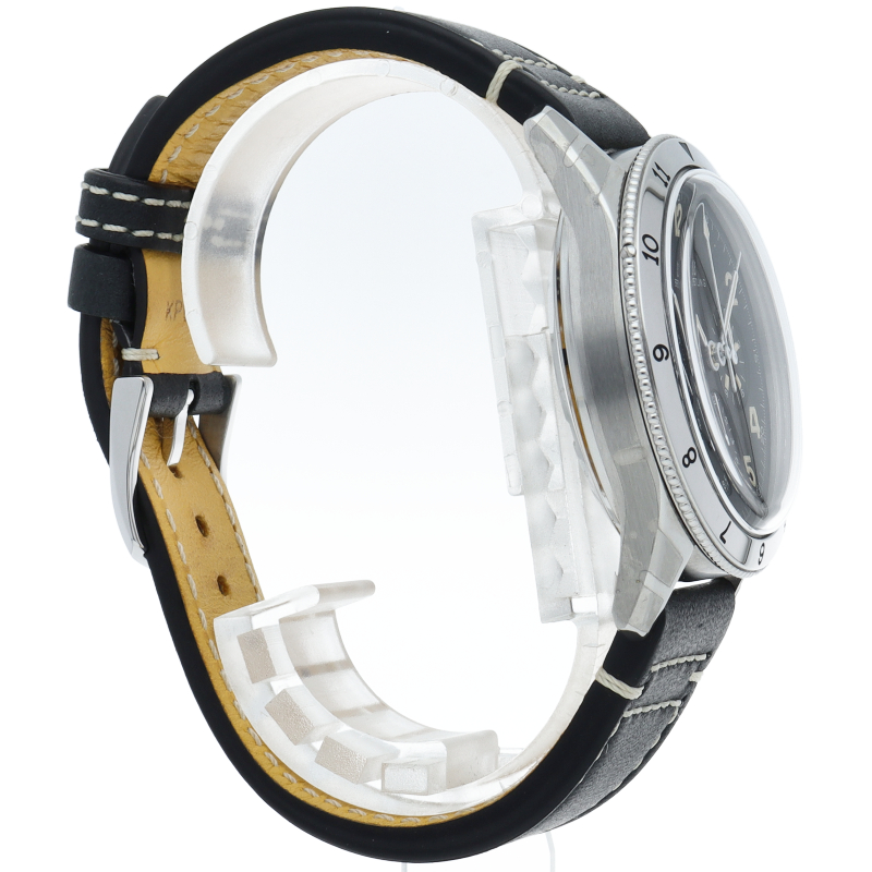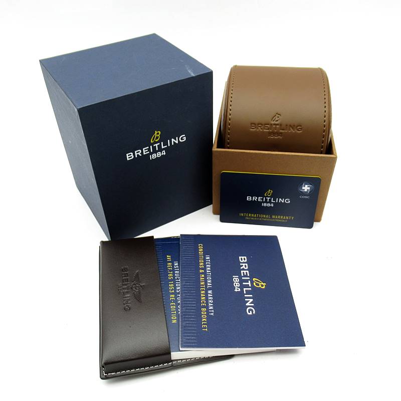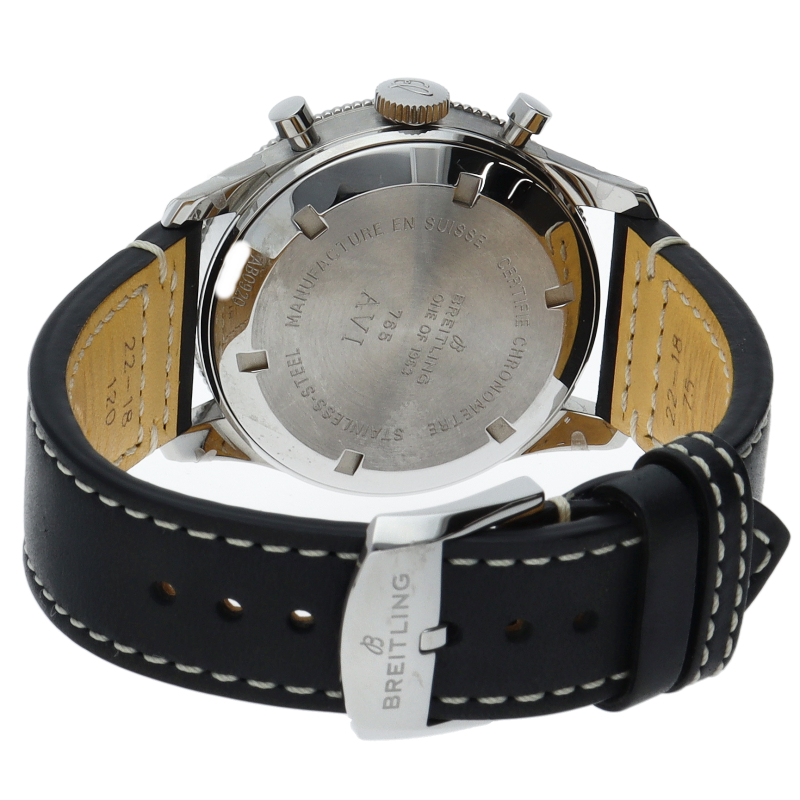 初期のコ・パイロット Ref.765 AVIを細部まで再現した「AVI REF.765 1953 リ・エディション」。ふくらみを持ったドーム型ヘサライトクリスタルで守られたオールブラックのダイヤルには、オリジナルのコ・パイロットと同じアラビア数字を採用。トーン・オン・トーンのスモールセコンドと15分積算計および12時間積算計を配しました。ブライトリング自社開発製造キャリバーB09を搭載。