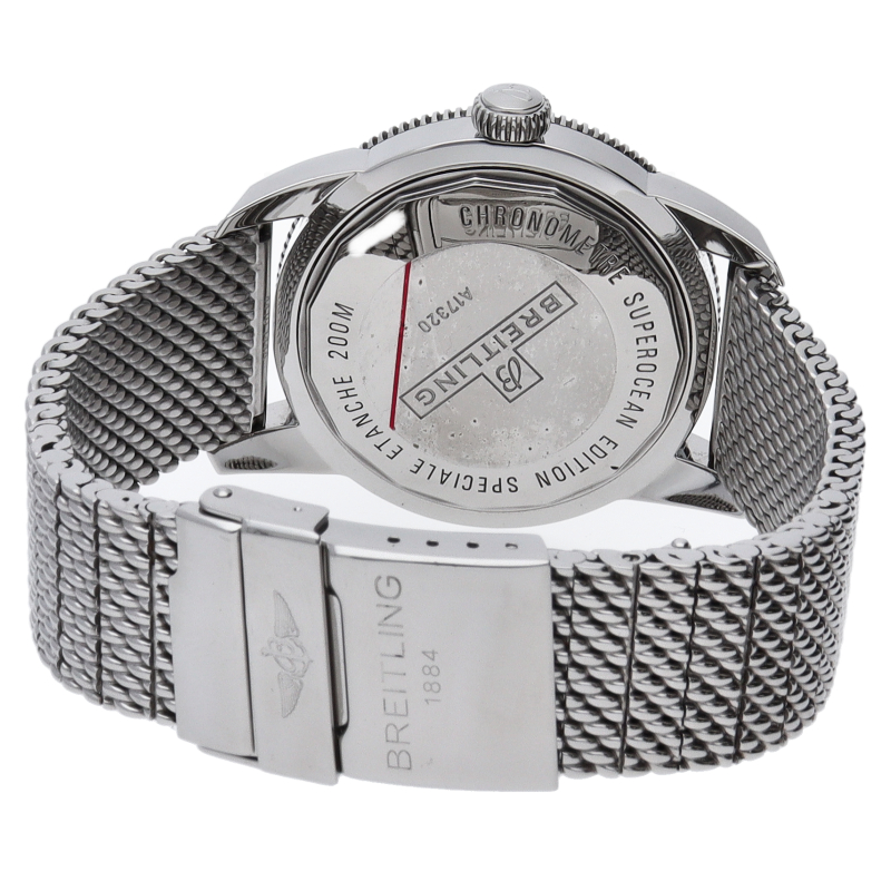 ブライトリングを代表するダイバーズ・コレクション「スーパーオーシャン」。1957年に発表し人気を博した初代モデルを50年ぶりに現代の技術で復活。当時のブライトリング・ロゴや独特の時針、オーシャンクラシックと呼ばれるメッシュブレスレットなど、オールドモデルの雰囲気が楽しめるモデルです。A17320/A172Q42OCA。