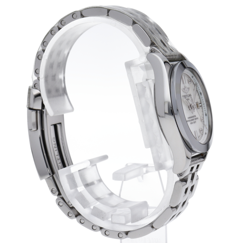 パイロットのための計器というイメージを払拭するため、3針モデルを中心にコレクション化した「ギャラクティック」。シェル文字盤に8ポイントダイヤモンドを施した豪華なモデルです。
