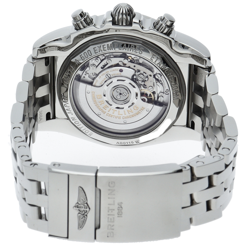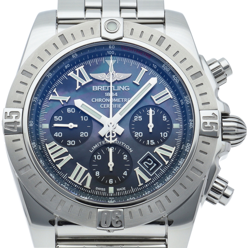 クロノマットのリミテッドエディションのなかでも常に高い人気を誇るマザー オブ パール文字盤。本作は、ブラックのマザー オブ パール文字盤にサブダイヤルをブラックに仕上げ、さらにローマンインデックスを配し一層特別感が際立つモデル。搭載する自社開発製造キャリバー01をサファイアクリスタルケースバックから鑑賞することが出来ます。AB0115/AB01153A1B1A1。