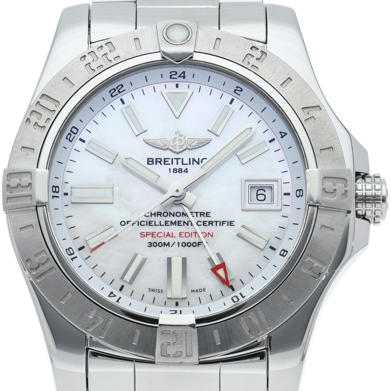 プロフェッショナルのための真の計器“アベンジャーII ”のGMTモデルです。赤いGMT針と回転ベゼルを活用することで、同時に3つの時間帯の時刻を表示することができます。人間工学に基づいて設計されたベゼルのライダータブは、機能性と見た目の美しさを両立した同モデルのシンボルです。日本限定モデル。A32390/A3239011/A809。