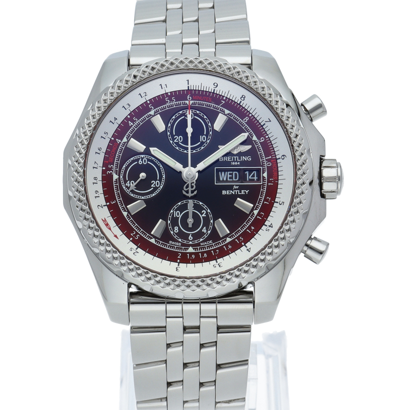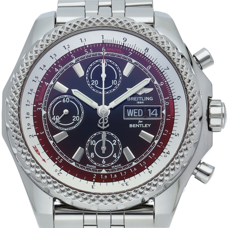 ベントレーとの人気コラボレーションモデル「ベントレーGT」。ベントレーの「GT」とはグランド・ツアラーと呼ばれる最高級スポーツカーのイニシャルです。クロノグラフ・デイデイト機能が搭載された高級感あふれるスポーツウォッチです。