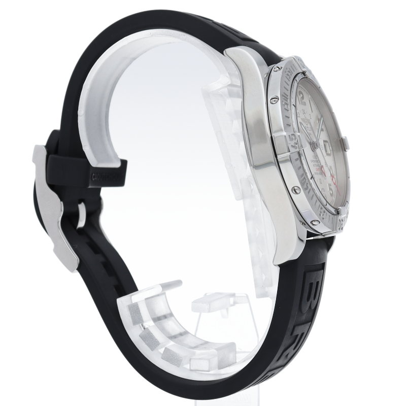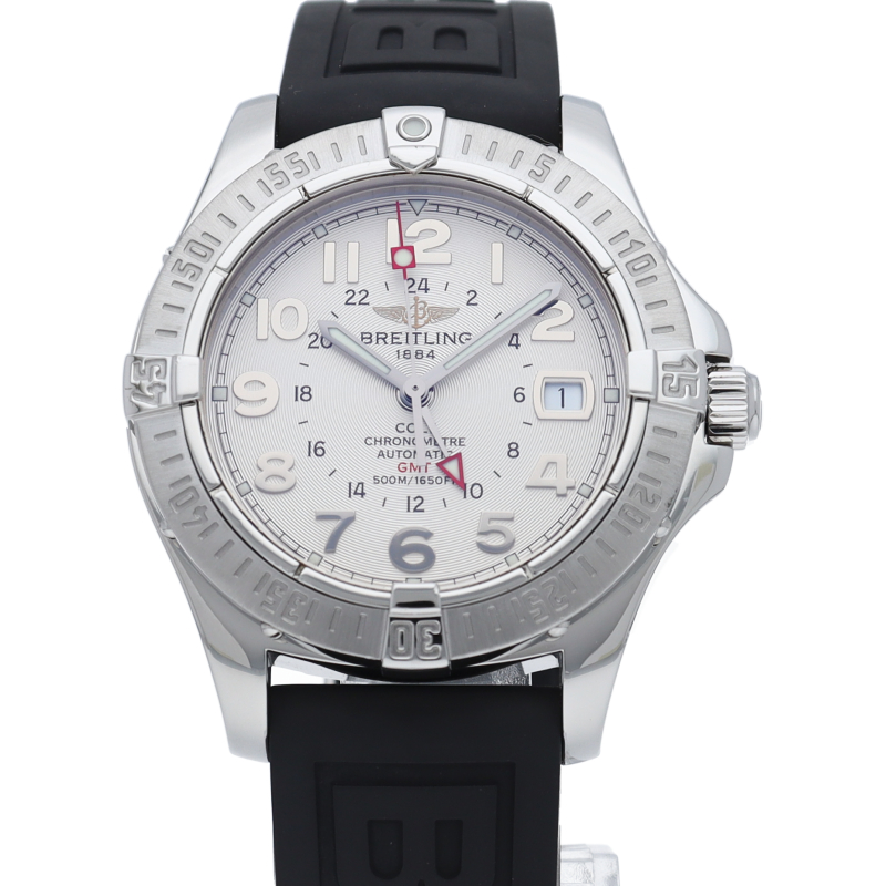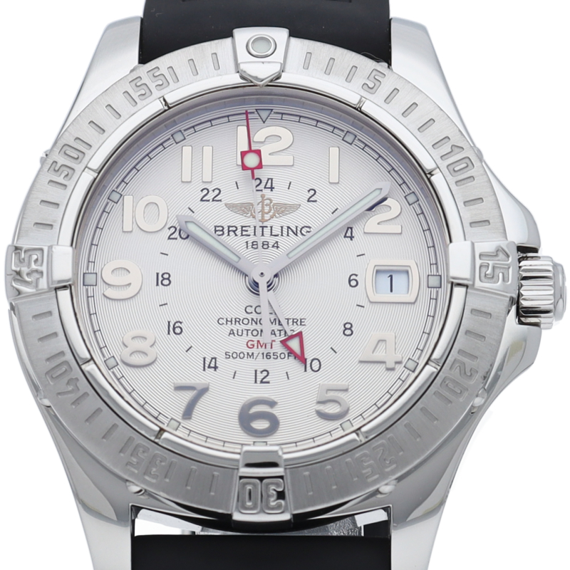 ブライトリングのオーソドックスな人気商品「コルト」。GMTと500m防水機能を併せ持つハイパフォーマンスなダイバーズモデルです。視認性にも優れているアラビア数字を採用しています。A32350。