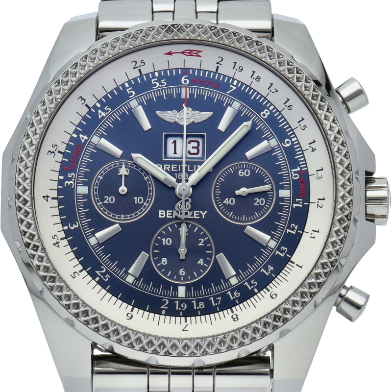 ベントレーの最高峰リムジンアルナージに搭載された、6.75リットルエンジンの排気量をモデルネームとしたラグジュアリーモデル。ベントレーモーターズに搭載された世界初の可変タキメーター、そして12時位置に表示される大型日付表示がこのモデルをさらに印象深くさせています。A44362/A442C52SP。"