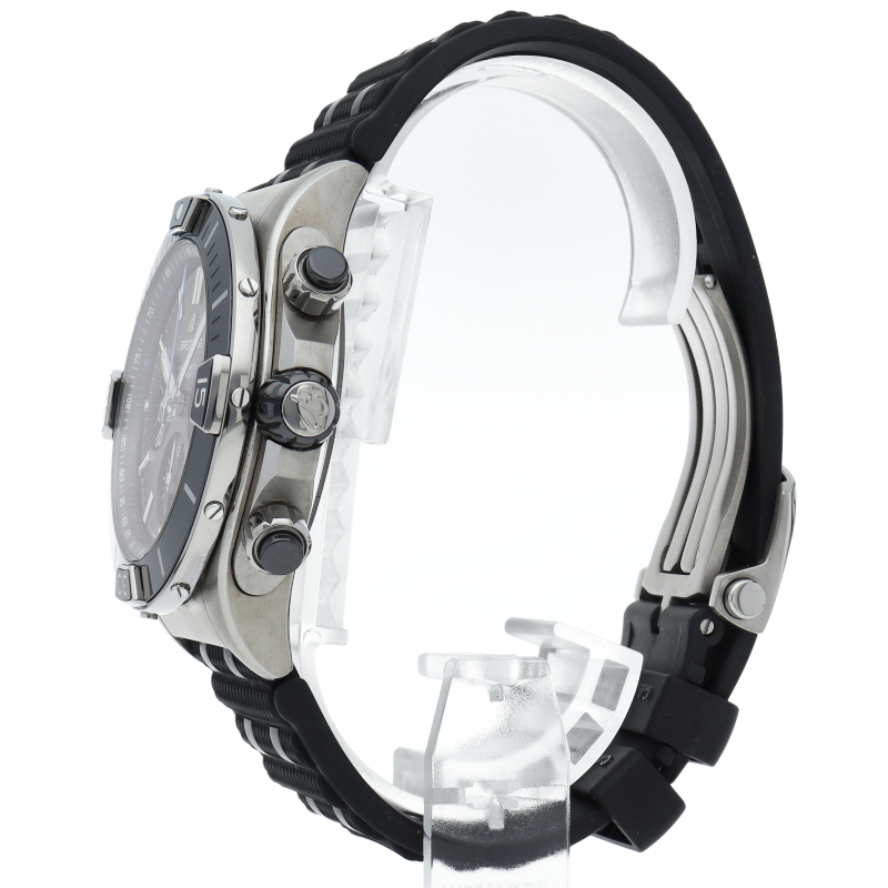 ブライトリングが1980年代にイタリア空軍のアクロバット飛行チームのために作成したクロノマットにインスパイアされた「スーパー クロノマット」。クロノマットの中でもスーパークロノマットは、ベゼルやリューズにセラミックインサートが使用されており、より高級感のあるモデルになっています。ムーブメントはブライトリング01を搭載。
