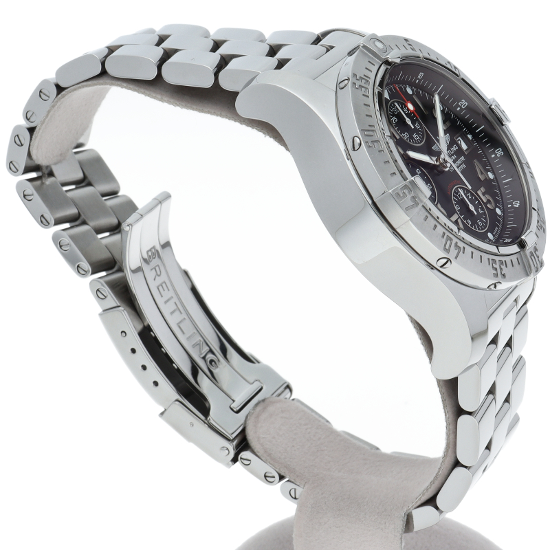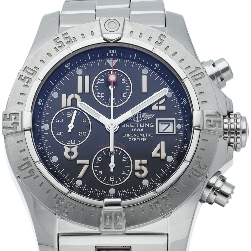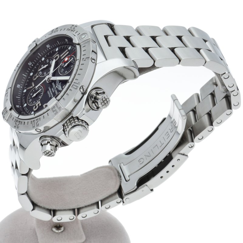 タフなクロノグラフを追求した「アベンジャー・スカイランド」。全てに強度と機能性を追及したモデルです。モダンなステンシル書体を採用したアラビアインデックスも特徴です。A13380/A338B61PRS。