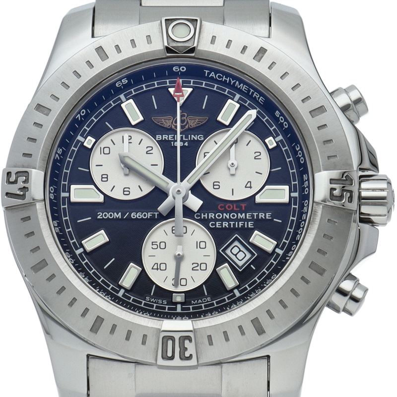 クロノグラフ機構を搭載した人気モデル「コルト クロノグラフ」。通常のクォーツの10倍の精度をもつスーパークォーツ・ムーブメントを搭載。