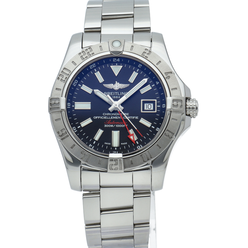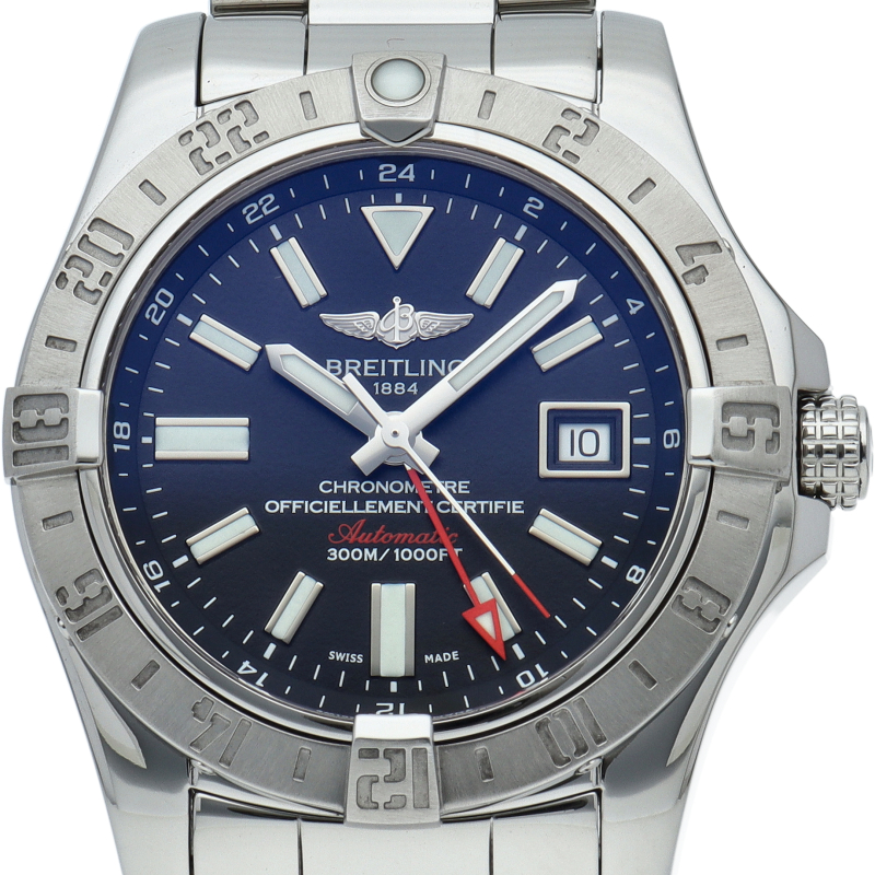 300mもの防水機能とGMT機能を備えた「アベンジャーII GMT」。24時間表示インデックスが刻まれたベゼルを操作することで第3タイムゾーンまでの時間が分かるようになっています。A32390/A3239011/BC35