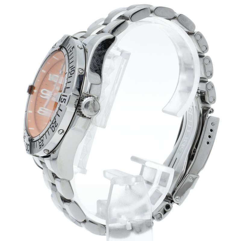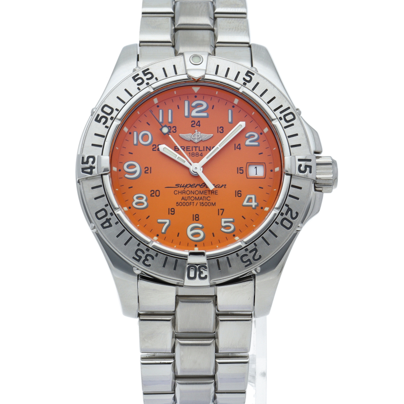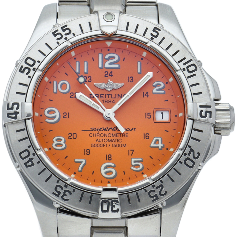特殊部隊の為に開発されたスーパーオーシャン。ケース内の圧力差が約3気圧を超えると、ケース内に蓄積したヘリウムガスを自動的に放出し、時計が破裂するのを防ぐという画期的な機構を搭載しています。視認性もよく、1500メートルという圧倒的な防水性能は、他のモデルを圧倒します。A17360