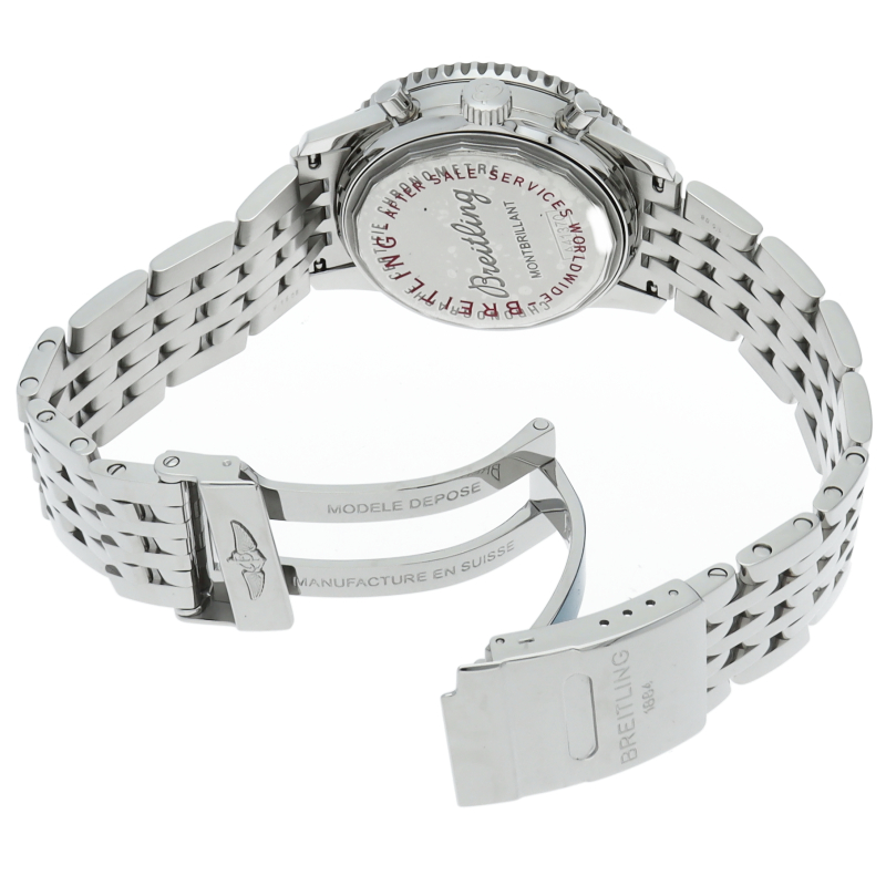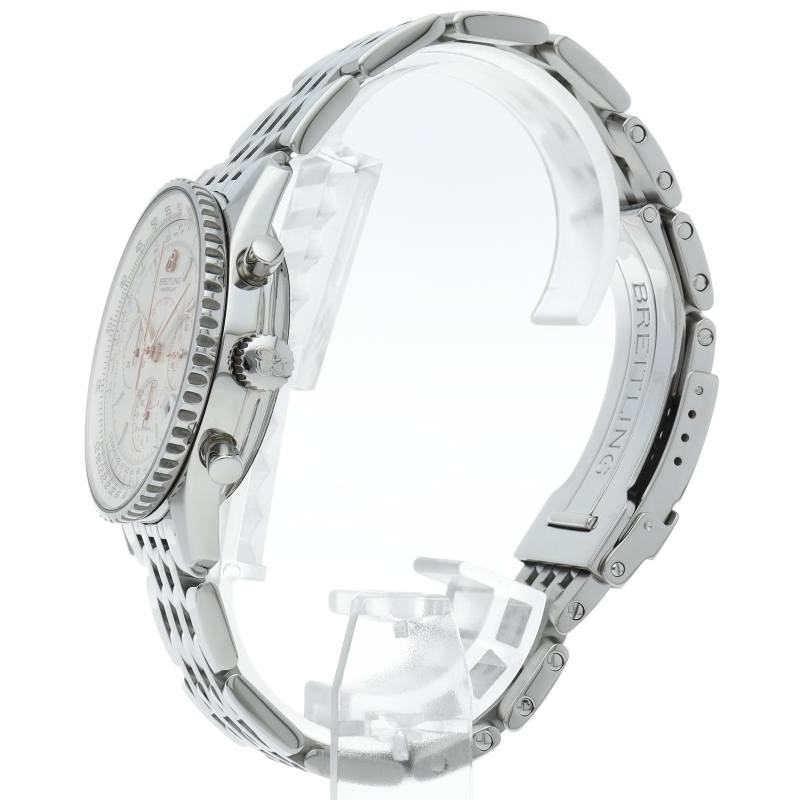 1942年に発表された世界初の回転計算尺付き腕時計クロノグラフの気品あるデザインを復刻した名作モデル。直径38mmのコンパクトなクロノグラフとして、性別を問わず愛されています。ムーブメントは小型かつ高い信頼性を誇るブライトリング41を搭載。A41370/A417G34NP