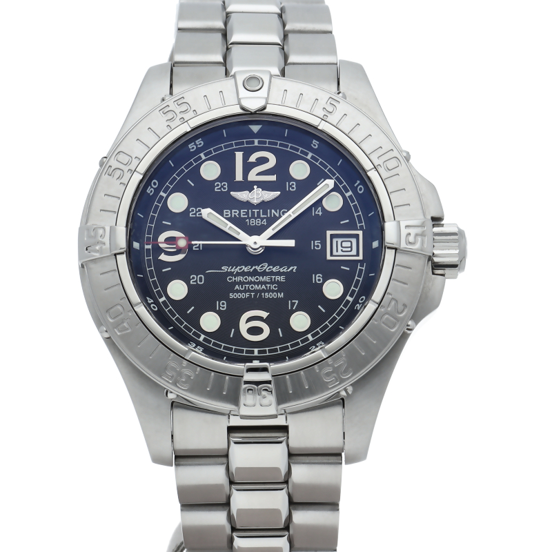 特殊部隊の為に開発されたスーパーオーシャン。ケース内の圧力差が約3気圧を超えると、ケース内に蓄積したヘリウムガスを自動的に放出し、時計が破裂するのを防ぐという画期的な機構を搭載しています。視認性もよく、1500メートルという圧倒的な防水性能は、他のモデルを圧倒します。A17360。