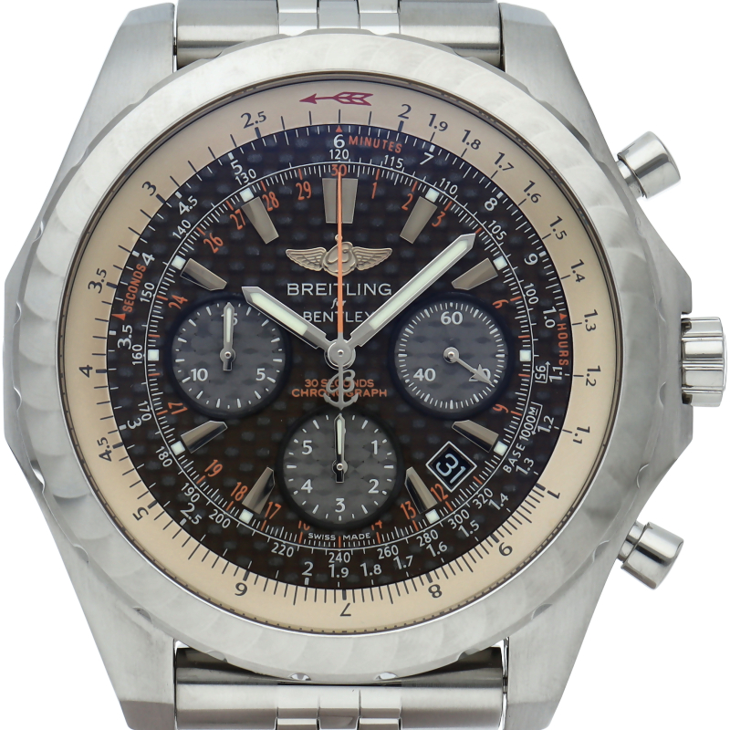 ブライトリングと、世界的に名だたるイギリスの高級車メーカー・ベントレーがパートナーシップを結び、開発されたブライトリング・ベントレーモデルです。