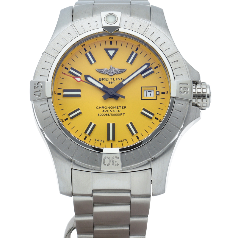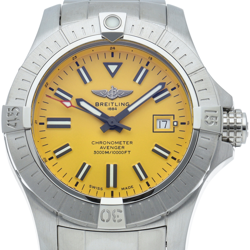 45ミリオーバーのボリューム抜群のケースに操作性の高いベゼルとリューズを備えています。地上はもちろん深海のような過酷な環境下でも抜群の視認性を誇ります。プロフェッショナルな機能を追求した、強靱なダイバーズウォッチです。A17319/A17319101I1A1。
