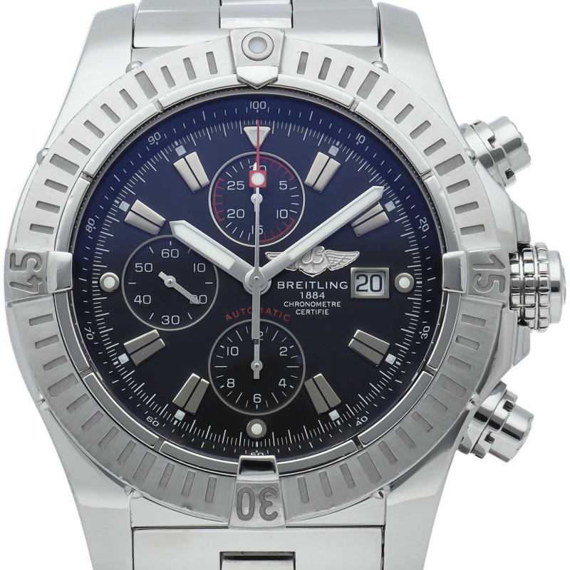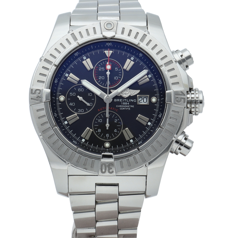 ブライトリングのタフなクロノグラフを追求し48ミリの大型ケースで存在感抜群の「スーパーアベンジャー」。クロノグラフやデイト表示搭載で機能面も優れた1本。