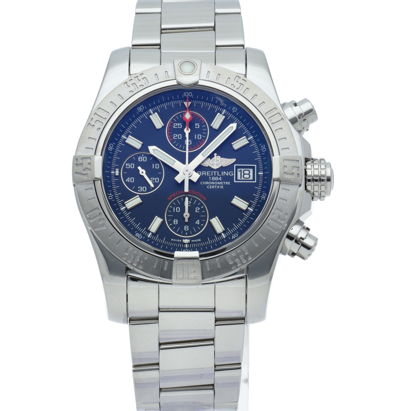 美しさと機能を融合させた「アベンジャーシリーズ」 あらゆるフィールドにおいて、機能性、精度、デザインを備えたハイスペックモデル。こちらは精悍なブルーの文字盤が目を惹く、日本限定のカラーリングです。A13381/A339C96PSS。